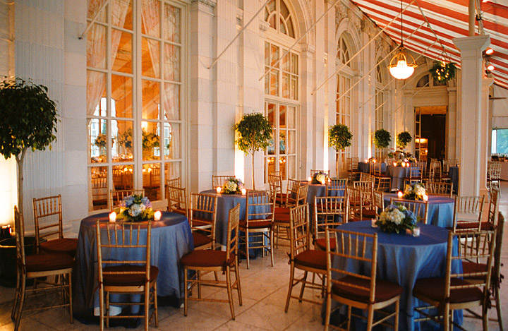 Owned by the Newport Preservation Society, Rosecliff is a one of the most luxurious, elegant, beautiful reception venues in Newport. Originally owned by the Nevada silver heiress Theresa Oelrichs, this “summer cottage” was modeled after the French palace at Versailles. Completed in 1902, this house has been the stage for some of the best social gatherings at the turn of the centuy. This gorgeous mansion has been the set for movies including The Great Gatsby, True Lies, Armistad, and 27 Dresses. Coming up the gravel drive, visitors feel like the’ve entered a fairy tale. If you want a venue that makes you feel like a princess, stop looking. This is it.