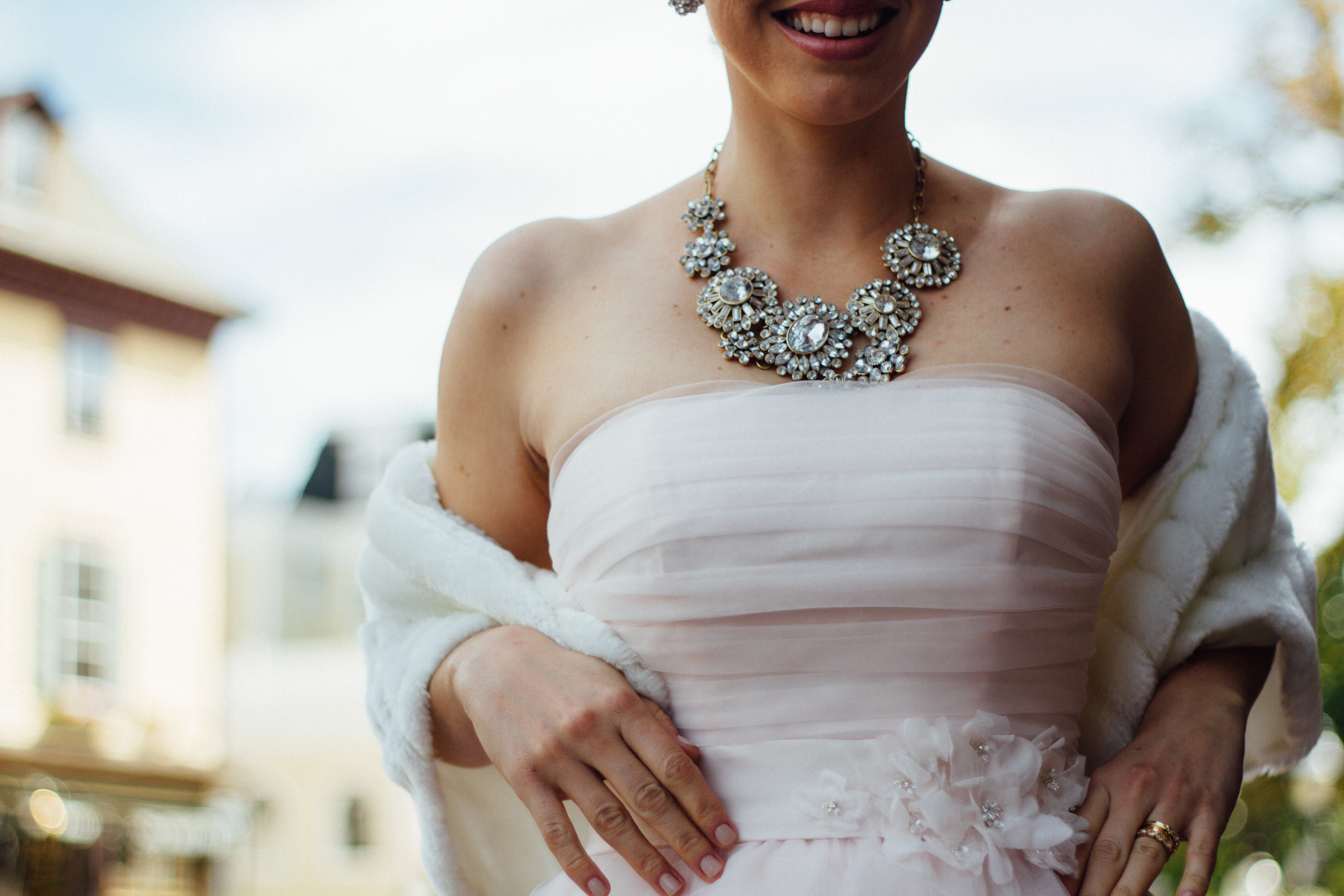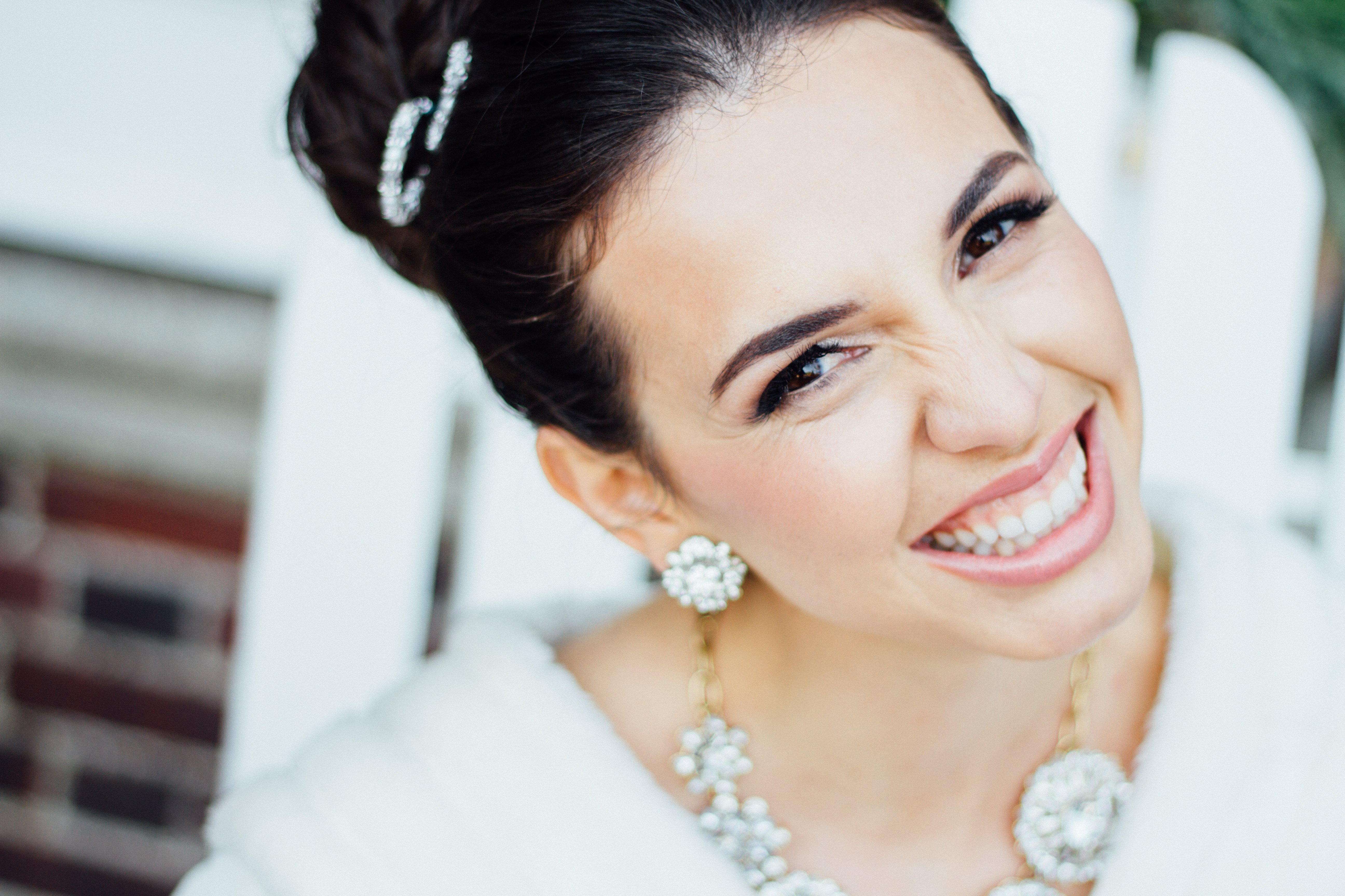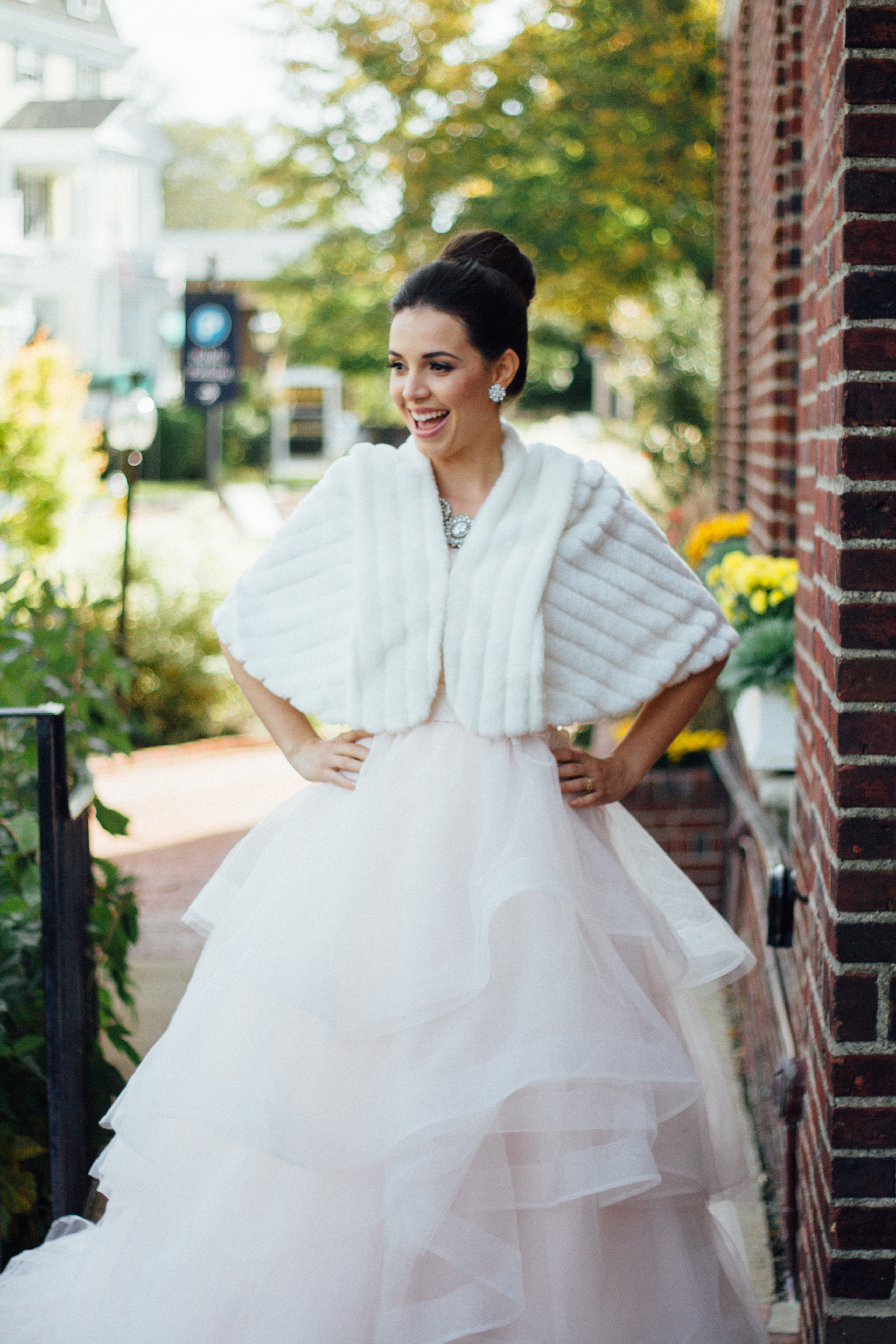 Meet the lovely Leila. The second she saw this soft pink gown, she started squealing. The layers of pink tulle make the ballgown look soft and light as air. The train feels grand but still playful. We played up the innocent feel with a ballerina bun and some sparkling bling. As you can see in these pictures, the gown was not only beautiful to look at, but fun to wear! The whole time, the crew was just giggling. Such fun! Is this ballerina bride style your favorite look so far? If you love this dress, comment below. We know where you can get one!