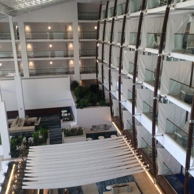 We pulled up, walked in under one of the coolest light fixtures I’ve ever seen and checked in. I don’t know about you, but I’m always anxious to see what hotel rooms look like. Jump on the bed, open every drawer, you know, normal stuff.