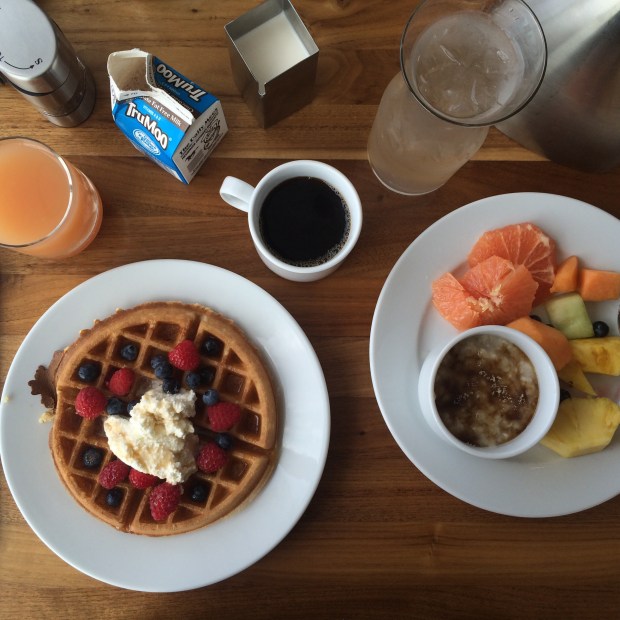 When we finally made it down to Mainsail for the breakfast buffet, the only thought on my mind was waffles. Piles and piles of dreamy waffles. Sitting by the window, coffee + juice close at hand and all the waffles I could ever eat just steps away, it was breakfast buffet heaven. Between the made-to-order omletts and waffles, the oatmeal, and fresh fruit, I ate my full and a few bites more. YUM!