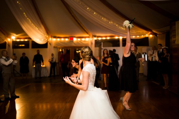Complete with a vintage Rolls Royce as their modern horse-drawn carriage, this beautiful couple’s wedding was perfection from start to finish. The ceremony and reception reception at Castle Hill Inn were flawless. The florals by Stone Blossom Floral & Event Design were the perfect flowering accent to the natural ocean beauty that surrounds the venue. Artistic Wedding Films captured the beautiful day and their video is GORGEOUS! Enjoy Julianne and Michael’s stunning video and pictures and after the bouquet toss, read about how Julianne and Michael met and fell in love. Hint, technology had a big part. ❤