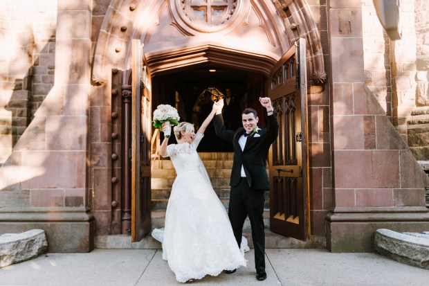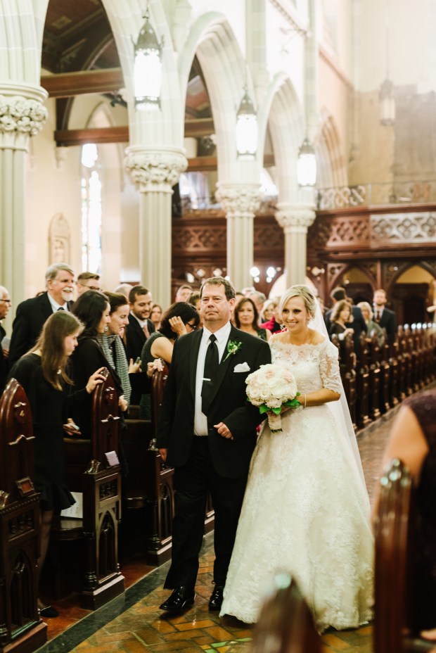 Photographer: Ann Marie Swift | Videographer(s): Blueflash Cinematography Link to wedding video: https://blueflash.smugmug.com/Clientspace/Wedding-Films/n-rD9Jh/i-JHJ8s4w/A | Reception Venue: Hotel Viking | Event Rentals: Antea Amorosa Designs | Transportation: Viking Trolley Tours | Favors: Donation to Sister’s Project | Wedding Cake/Dessert: Konditor Meister | Month of Coordinator: Infinite Events | Wedding Venue Coordinator: Linda Ferguson |Florist: Laurie Marshall | Invitation/Paper Goods: Ivy Dorflinger for Ivy’s Invitations | Bridal Gown designed by Pronovias from Precious Memories | Bridal Shoes: Bagdley Mischa | Bridal Veil: Pronovias | Bridal Jewelry: BHLDN, Tiffany and Co., Grandma’s necklace | Bridal and Bridesmaids Hair and Makeup: Jaclynn Kate | Groom and Groomsmen’s Outfits: Jos. A. Banks | Bridesmaids Dresses: J.Crew | DJ/Band/Entertainment: Lisa Love | Ceremony Officiate: Father Eric Bennett | Ceremony Music: Cody Mead | Ceremony Venue: St Mary’s Church
