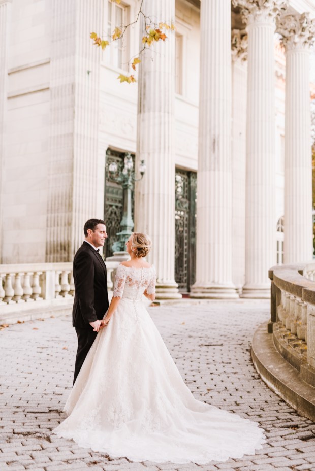 The couple had always loved Hotel Viking, and it was one of their first ideas for a wedding venue. With the perfect location, elegant rooming options for guests, and a ballroom big enough for all their friends, it was clearly the best choice. Their wedding day was pure happiness from start to finish. It was a beautiful, sunny November day when Kristen got ready in the Marble Suite. Getting to look out over the rooftops of Newport as she got ready and read a letter from her soon-to-be husband, she felt all the love surrounding her. Before the ceremony the bride and bridesmaid took a cruise in the trolley with her family around 2nd beach – it was so serene and the perfect way to reflect before the big moment.