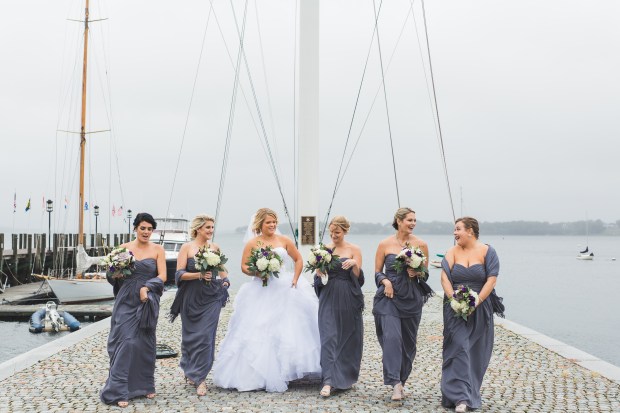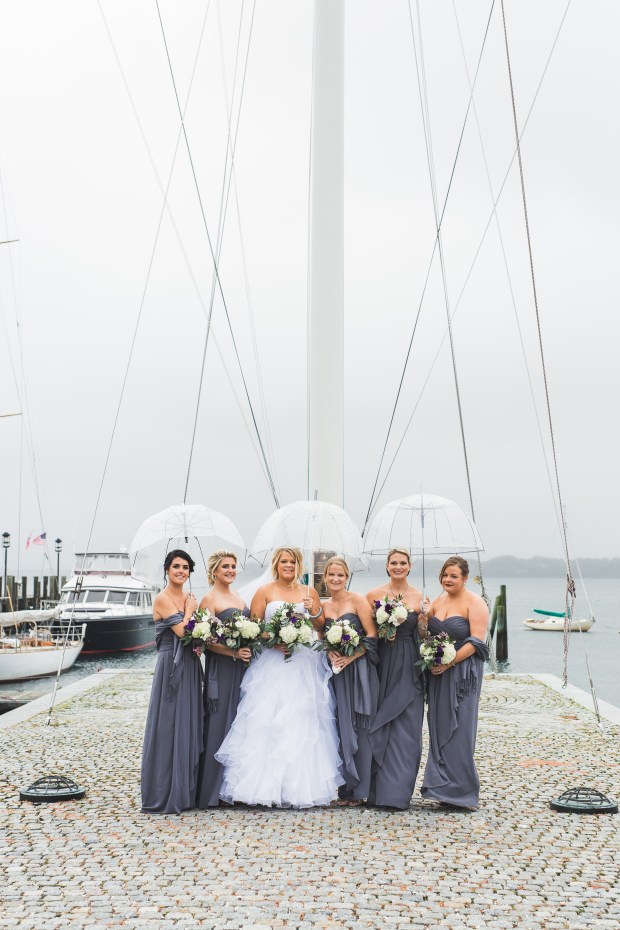Photography: About Time Photography | Second Shooter: Jessica Herndon | Ceremony Venue: St. Michael’s Episcopal Church | Reception Venue: Herreshoff Marine Museum | Catering, Flowers, Decor, and Cake: Pranzi | Bride’s and Bridesmaids’ Dresses: David’s Bridal | Hair and Makeup: Halo Hair & Body | Tuxes: Men’s Wearhouse | Band: Do I Do