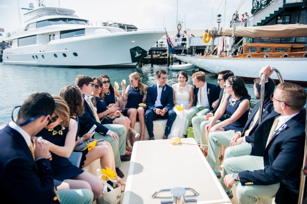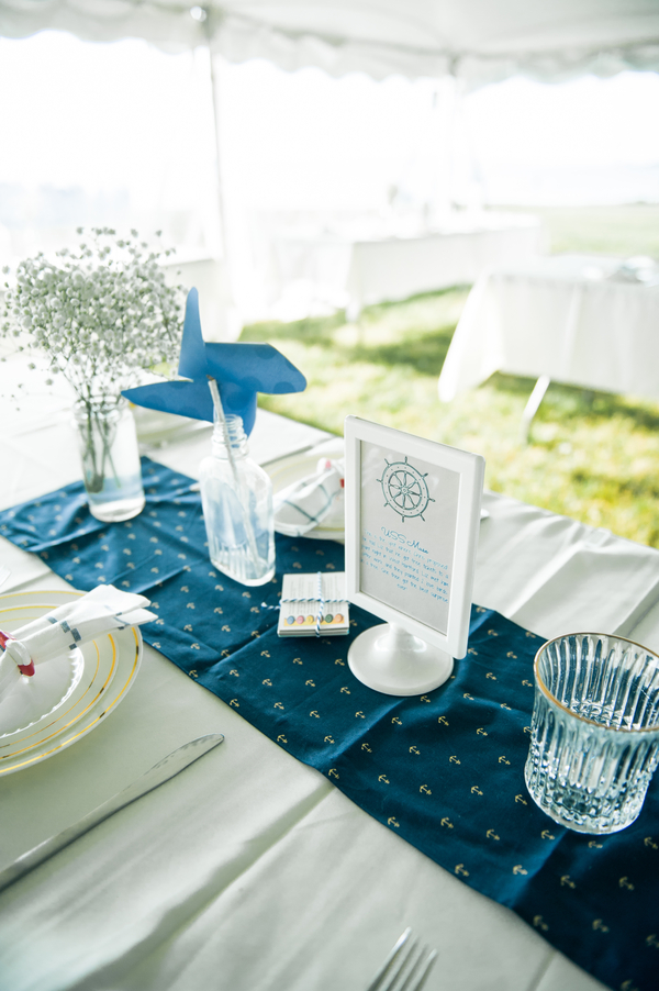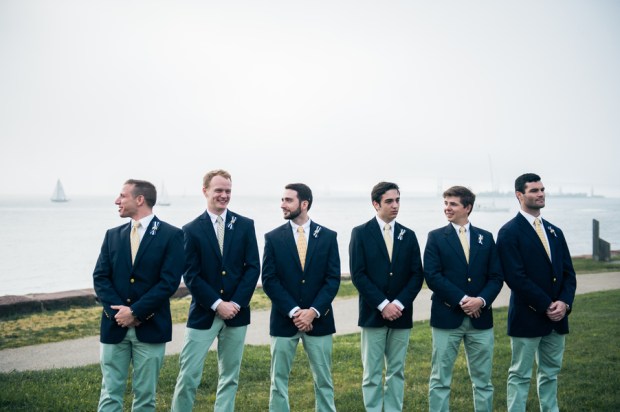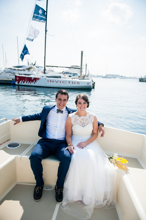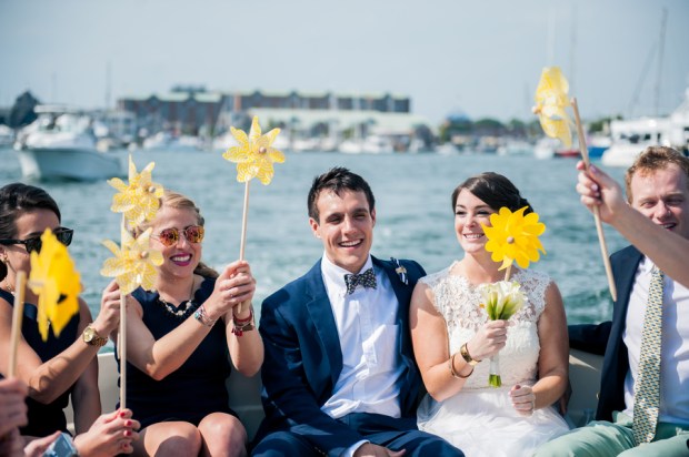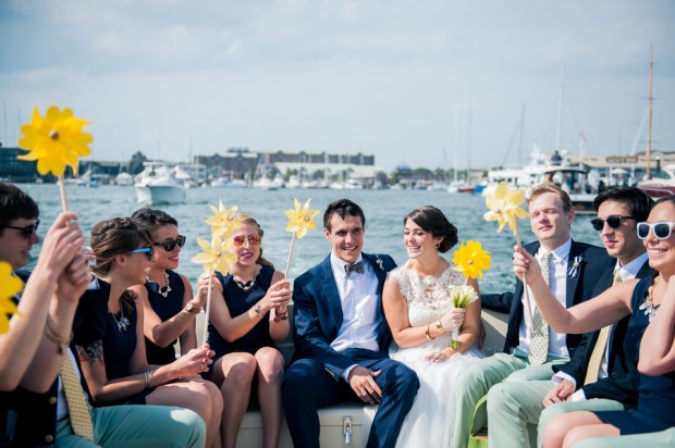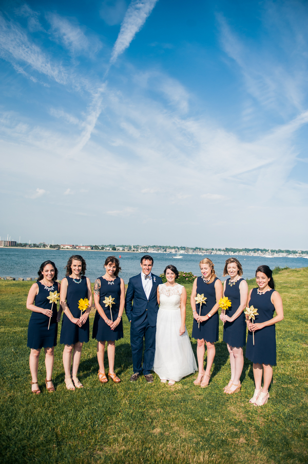Venue: Fort Adams | Photographer(s): Kylie Lynn Photography | Invitation/Paper Goods: Designed in Photoshop by Bride and Groom & Printed by Vista Print | Bridal Gown: Purchased at BHLDN, Annabelle Dress with Savannah Topper | Bridal Shoes: Kate Spade | Bridal Earrings: Kate Spade | Grandmother’s handwritten necklace purchased on Etsy and Grandmother monogram bracelet-antique | Bridal Hair: Liz Tucker, hair from Eden XO | Grooms Outfit: J Crew Factory | Bridesmaids Dresses: J Crew Factory | Bridesmaids Hair and Makeup: Liz Tucker, hair from Eden XO | Groomsmen Outfits – Blazers: Ralph Lauren pants: J Crew Factory | Florist: Dave’s Market| Pinwheels: Hobby Lobby | DJ/Band/Entertainment: Suzanne from Moondance Productions | Ceremony Officiate: Groom’s Grandfather, Richard Hunt | Ceremony Music: Hey Soul Sister by Train | Event Rentals: ABC Rent a Tent | Catering: Food Trucks- Roxy’s Grilled Cheese and Mijos Tacos | Transportation: OldPort Marine | Favors: Candy & Photobooth pictures from Moondance Productions | Wedding Cake/Dessert: Trader Joe’s Macarons, Candy Bar and Cake from Atkins Farms