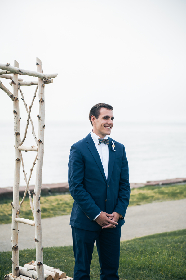 Soon after Chris proposed the couple decided on marrying in Newport, the home of Liz’s grandparents and a place filled with great memories for the couple. From there the planning was easy sailing as soon as they booked Kylie Lynn Photography for their wedding at the historic sea front Fort Adams! The grooms mother and stepfather cut down birch trees in their backyard to build the arch for the ceremony! The couples table cards were nautically named after special parts of their life (e.g. USS Korea, USS Pretzel – the couples cat) with a paragraph on the back explaining the significance. Liz also hand made almost everything for the day of, including the napkins (bought dish cloths cut and sewed), the boutineers, the welcome signs, food signs, calligraphed name tags, YAY flag programs, table runners, pinwheels, corn hole, and the save the date and invitations, RSVP Mad libs-displayed at our wedding, complete with superlatives. This cute couple is the living embodiment of the song, “5000 miles” and as their sweet smiles are proof, true love can weather any distance!