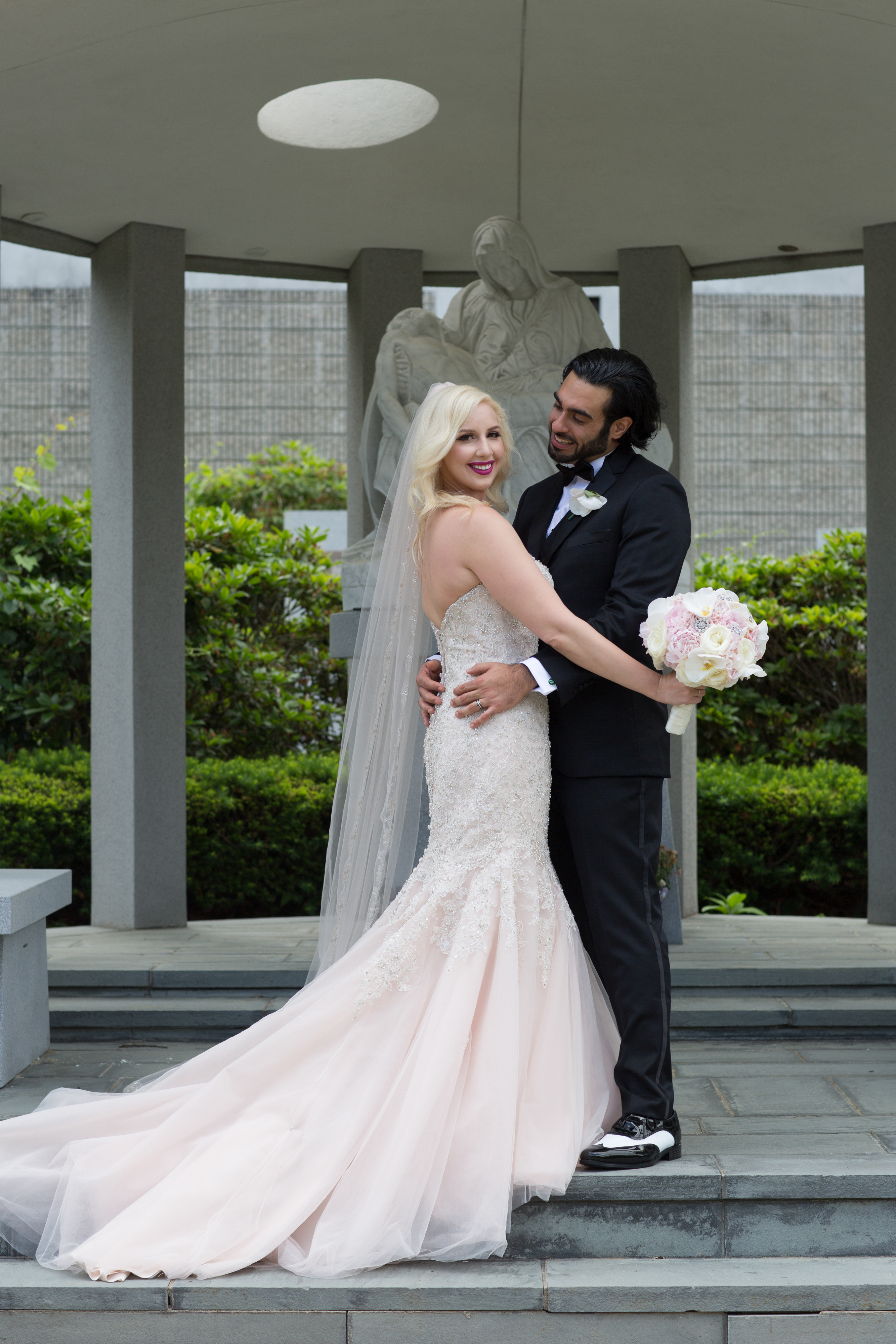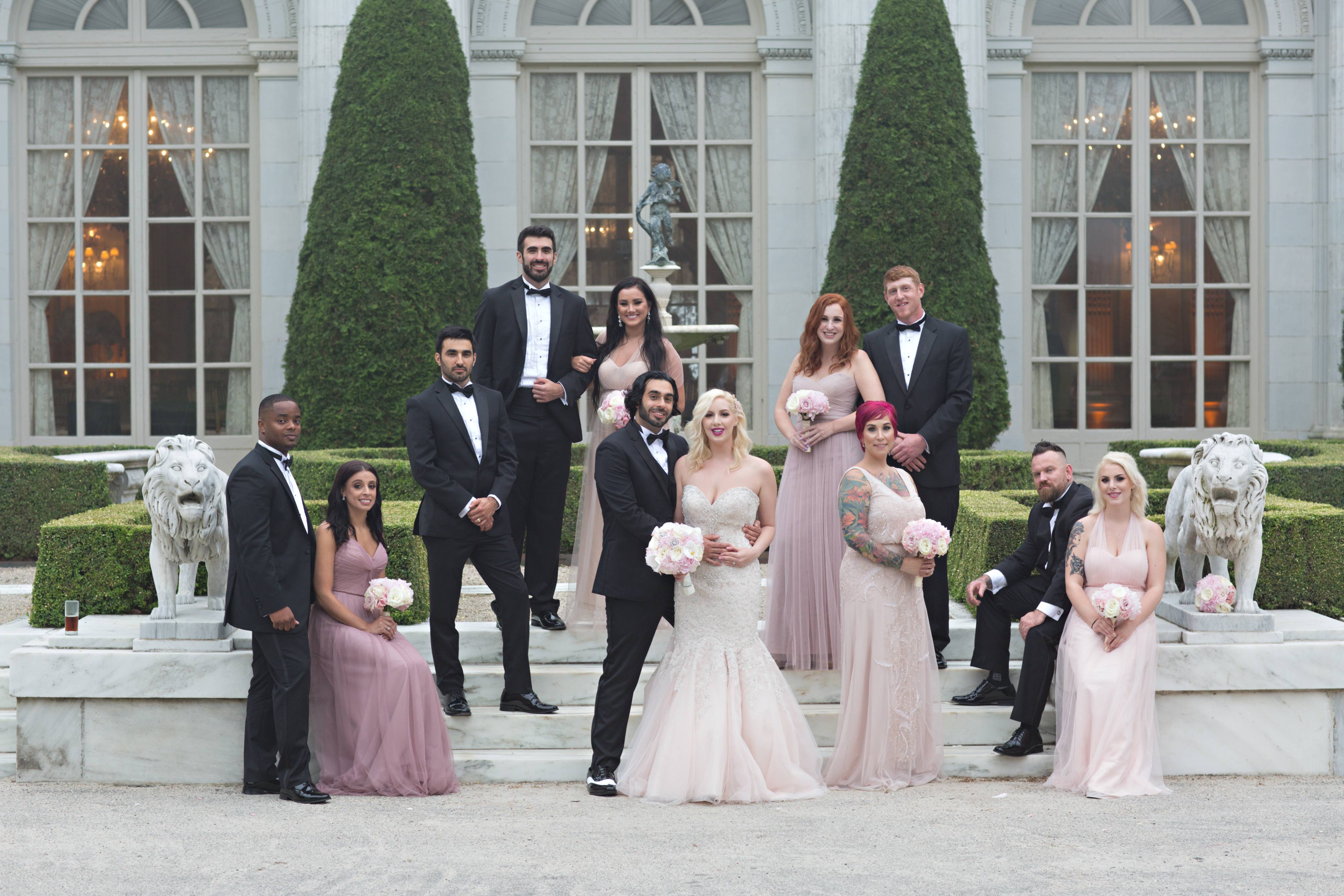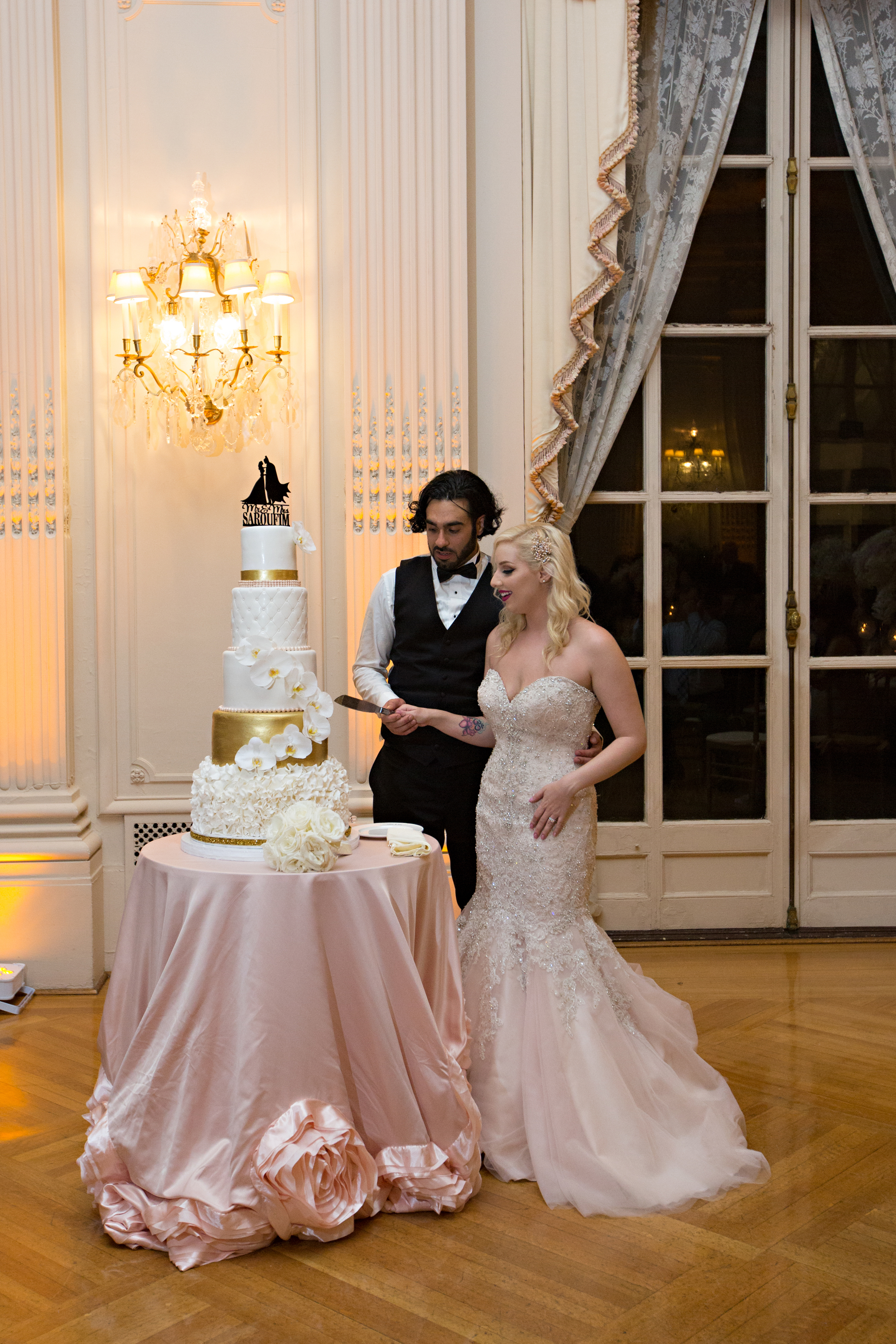 On June 18th, (18 is the couples lucky number), Ariana walked down the aisle at Elie’s family church Our Lady of the Cedars of Lebanon as a vision in pink in a stunning Allure blush gown. The couple arrived at the reception venue in a vintage 1948 Rolls Royce, setting the tone for their grand affair. Playing into the mansion’s design, the wedding decor was ivory, blush, and gold with pearl. The couples 5-tier cake with 3 flavors was a true piece of art. The dessert bar added a tasty treat to guest’s evening and was the perfect display of their Rosecliff Cookies favors. Jaclyn Lombardo Photography captured all the beauty and we just know, you’re going to love it as much as we do! Congrats to Ariana and Elie.