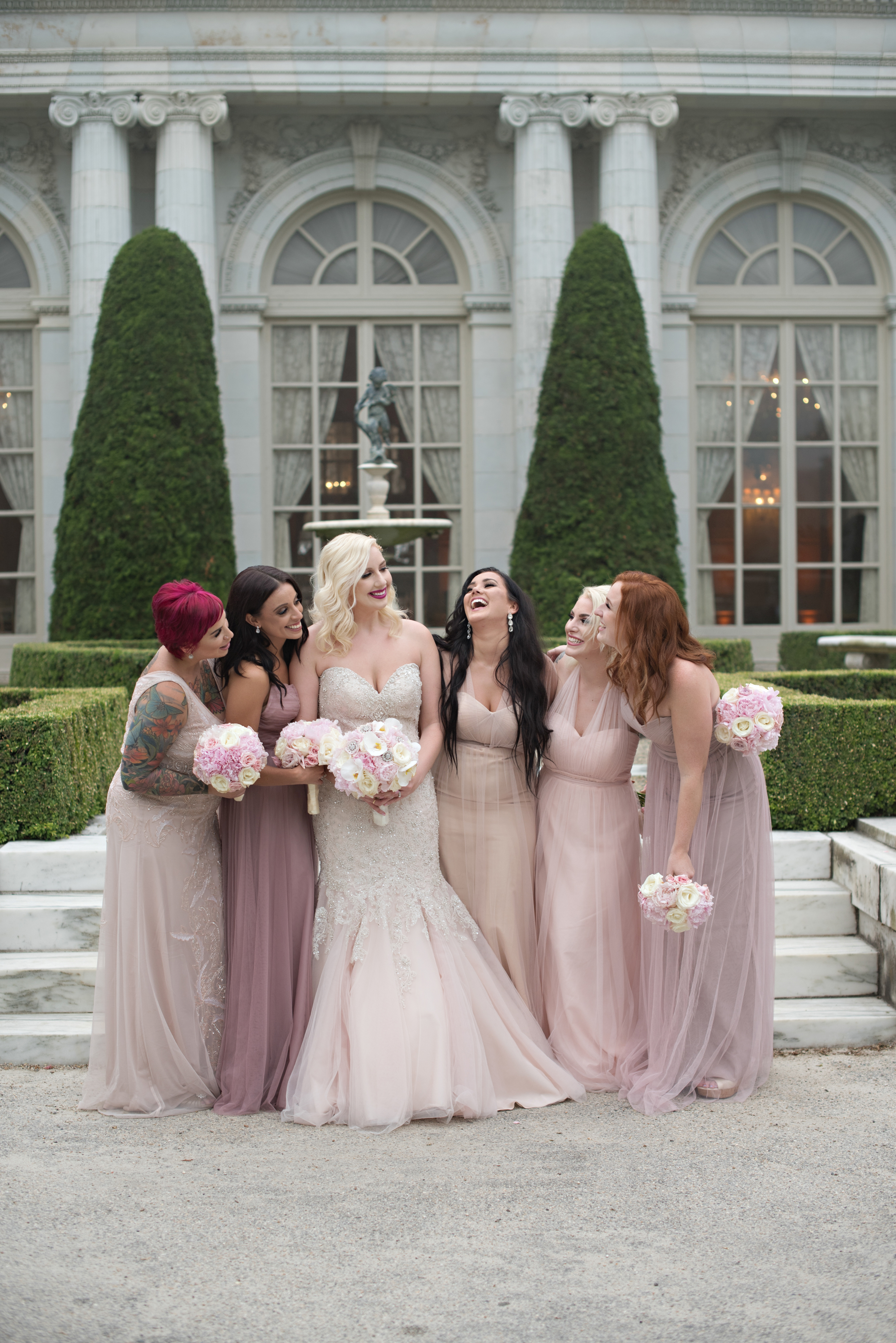 Photographer: Jaclyn Lombardo Photography | Ceremony: Our Lady of the Cedars of Lebanon | Reception: Rosecliff Mansion | Invitation/Paper Goods: Minted | Florist: Milestones Flower Shop | DJ/band: Beantown Swing | Caterer: Russell Morin | Videographer: Adam Severi | Officiant: Msgr. Georges El-Khalli, Ph.D | Cake and Favors: Artisan Bake Shop | Makeup/Hair: HS Artistry | Transportation: Rockstar Limo and Boston Bridal Bus (1948 Rolls Royce) | Bridal Gown: Allure from Vows | Bridal Shoes: Jimmy Choo and Badgley Mischka | Bridal earrings: Bride’s Mother’s diamond earrings | Hairpiece: BHLDN from Anthropologie | Bridesmaid Dresses: BHLDN from Anthropologie | Rings: Long’s Jewelers | Rentals: PEAK Events