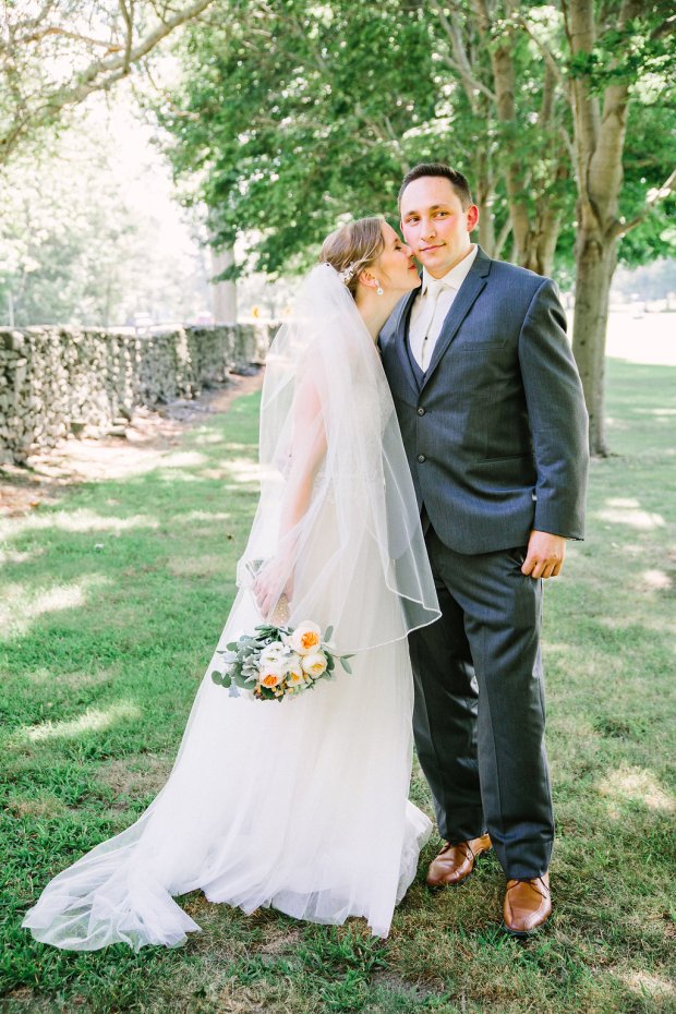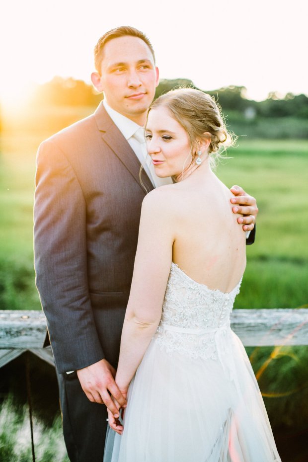 Bride Ashley is a wedding photographer by trade. Collecting ideas from all the weddings she’s captured, Ashley was able to craft a 100% unique wedding that was all about she and Dan. From their homemade cookie favors and the wedding arch built by the groom the morning of (yes of) the wedding, their day was all they’d dreamed of and more. When the couple purchases their first home, they hope the arch will stand as a testament to their love in a new backyard. ❤ Stella Mia Photography captured their big day at Quidnessett Country Club with perfect lighting and some adorable couple portraits!
