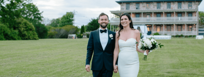 Kathryn and Joshua brought a whole new level of casual elegance to the Stone House in Little Compton, Rhode Island. The couple used classic details like the bride’s Sarah Janks dress and gorgeous bouquet by Sayles Livingston filled with white roses, peonies, and hydrangeas to create a relaxed elegant feel. The groom and best man were fitted in Black Lapel apparel and bow ties by Drake’s giving the men a dashing air.