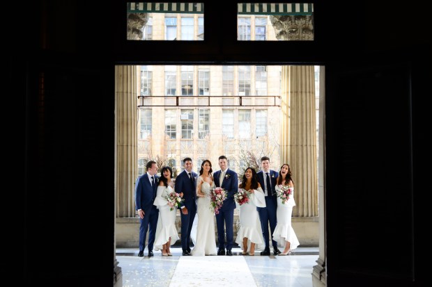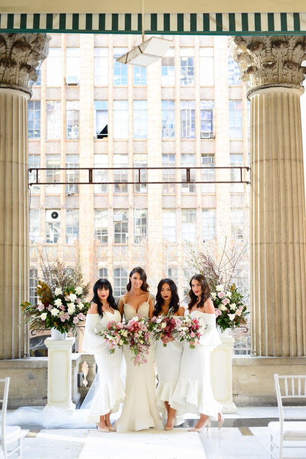 As unique as all the bridal parties outfits, all the flowers present at Emily and Pierre’s weddings were shades of white and pink and all imported from around the world. Florist Foxy Evergreen created cascading arrangements that matched the old-world charm of the wedding venue. Ramy from Ateia captured every detail of the day in keeping with the glamorous vision of the happy couple.