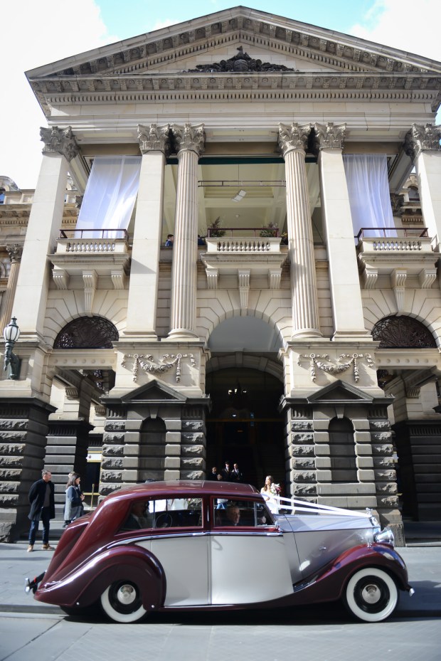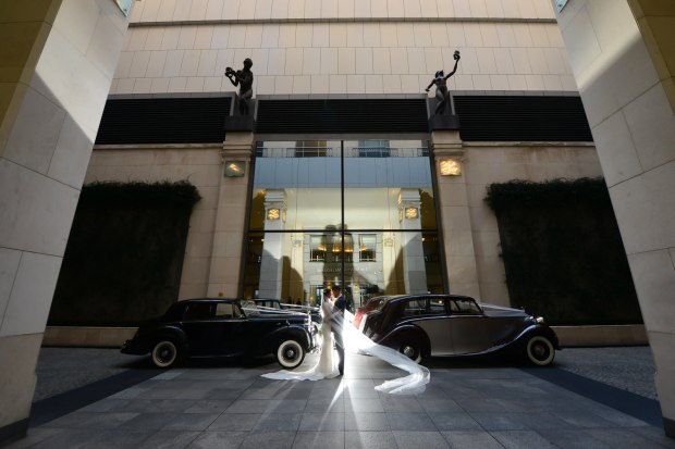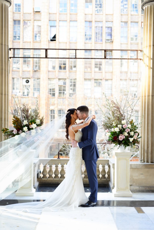 From the very beginning, Emily knew just what she wanted. Planning a wedding in only 6 months, she moved quickly and the result was a glamorous event for 100 guests. From their ceremony on the stately balcony of the Melbourne Town Hall to the antiqued appeal of their reception at the George Ballroom, every detail of the day was truly TV perfect. At their reception, long tables adorned with simple garlands and carefully appointed details created a truly stunning event!