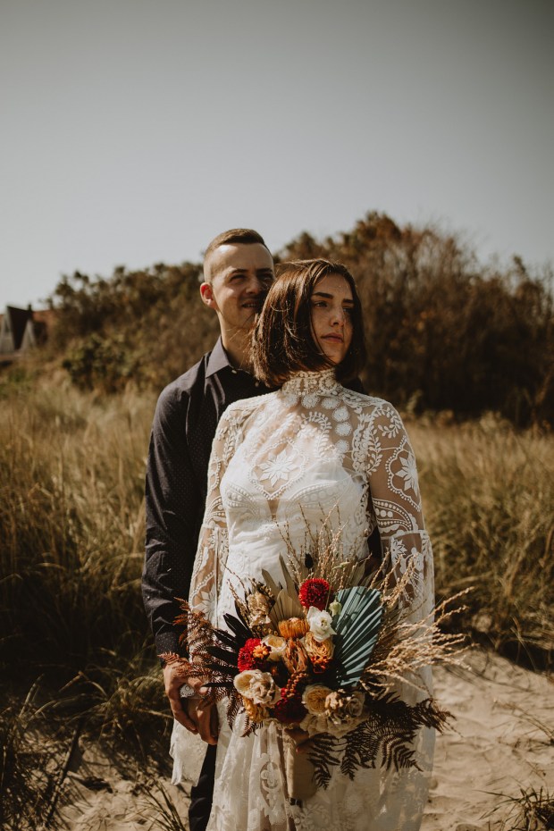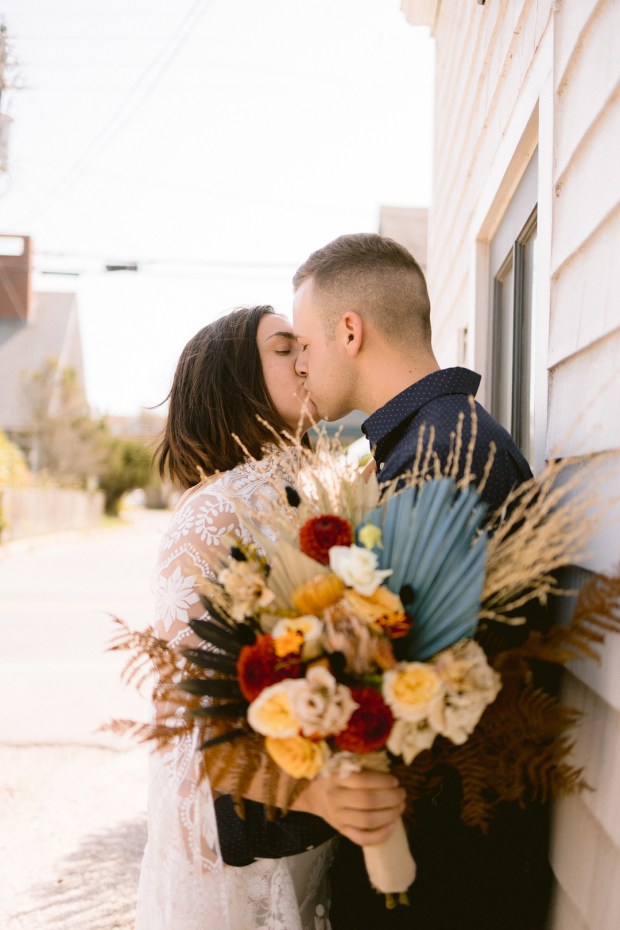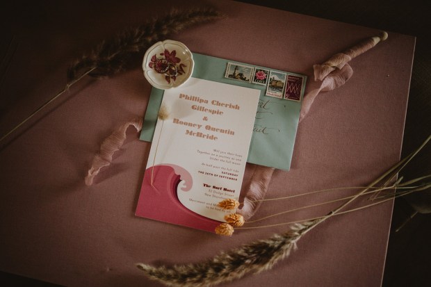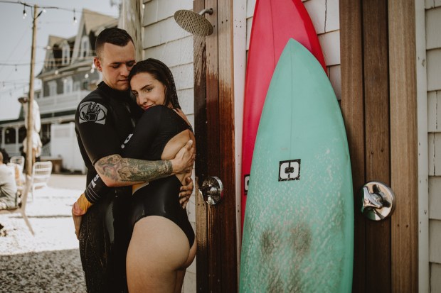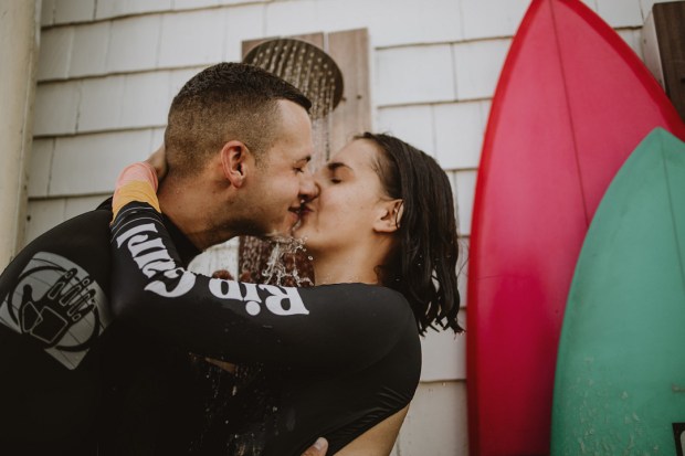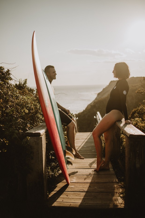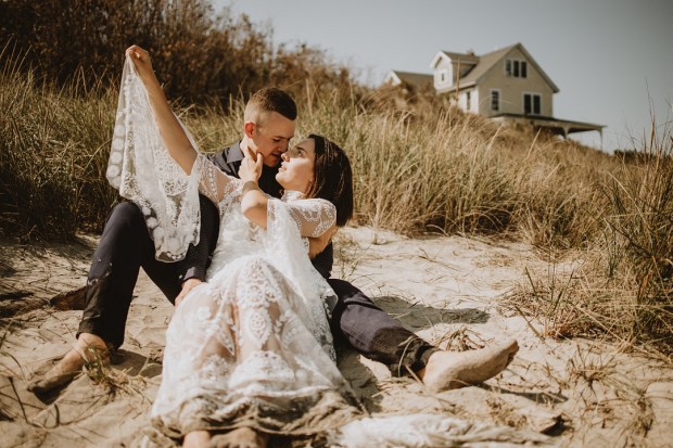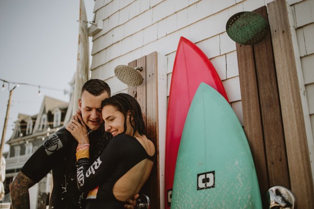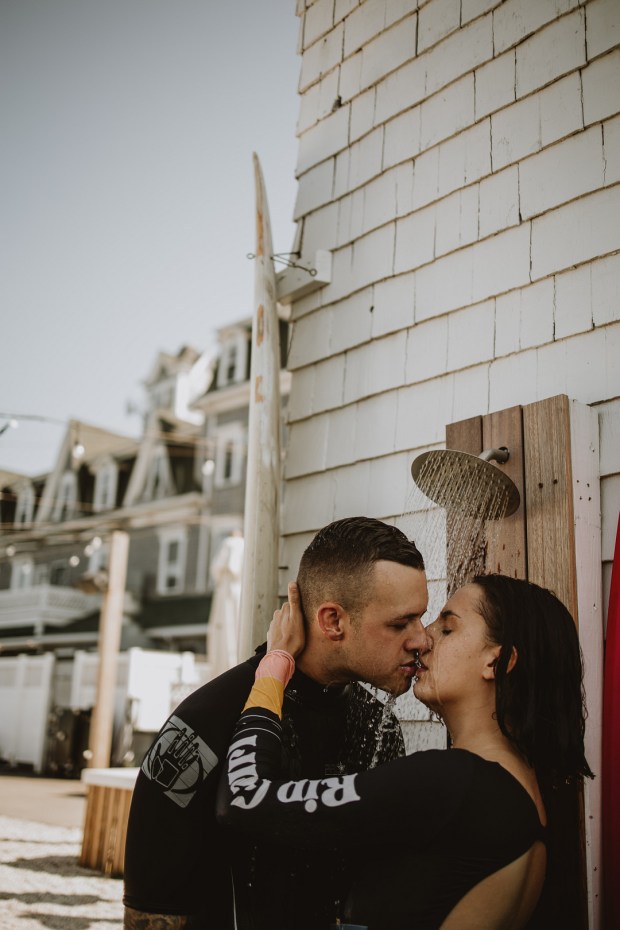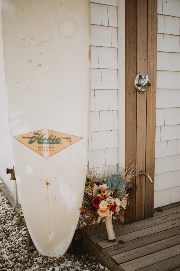 Photographer: Seas Mtns Co | Venue: Block Island Beach House | Designer: Dewitt Planning | Surf Board: Conant Designs | Dress Designer: Rue De Seine