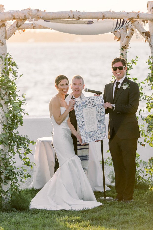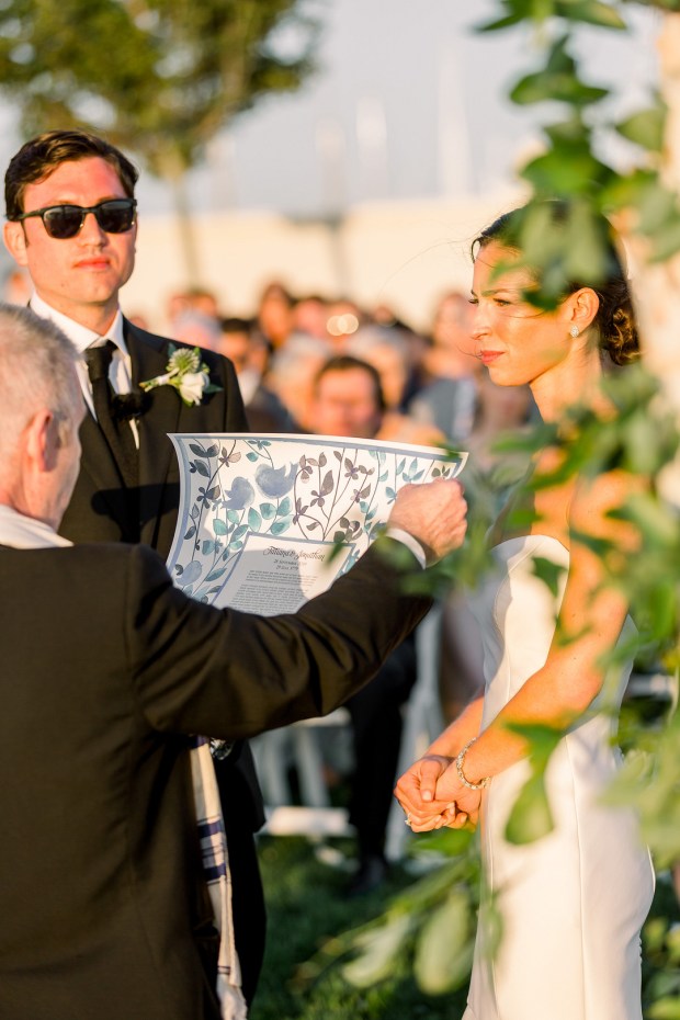Tatiana and Jonathan wanted their wedding to be a refreshing get away from their busy lives in Chicago and Philadelphia. Newport was the perfect choice with relaxed elegant beach venues and views that instantly make guests relaxed. They also incorporated a few Jewish traditions into their special day like signing the Ketubah. This moment happened just before the ceremony and provided a special personal moment to share with our their family and friends present. We were married under a Chuppah, a Jewish wedding canopy, which was covered with the bride’s late grandfather’s tallit (a Jewish prayer shawl) and used Tatiana’s grandmother’s sterling silver Kiddush cup to share their first sip of wine.