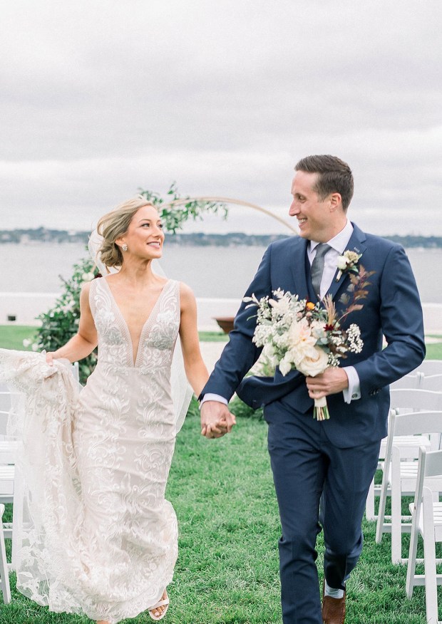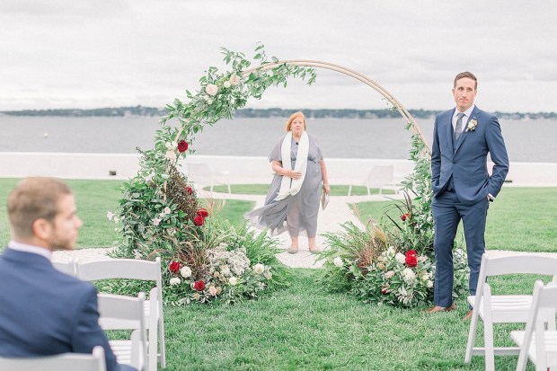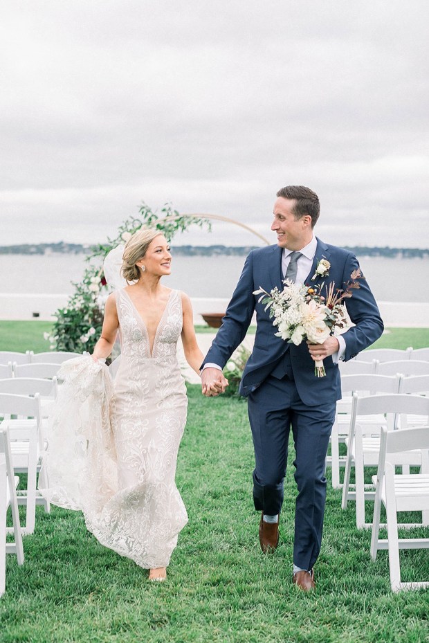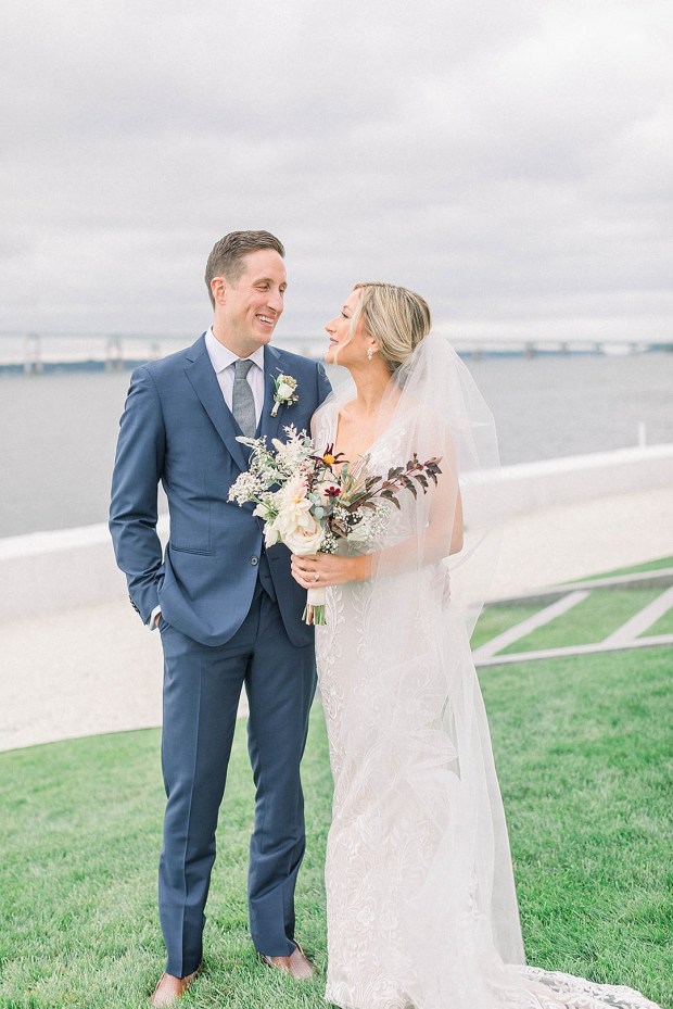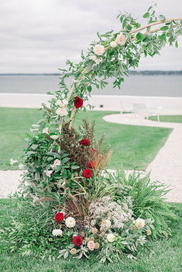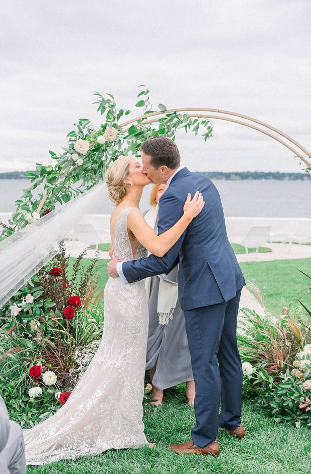 Newport Rhode Islands stunning wedding venue, Belle Mer ran by Longwood Venue was nothing short of amazing experience. The view of the ocean front was one close to heart, our Groom being from a beach resort town. Upon arrival, a stunning floral hoop greeted guests. The earth toned flowers paired perfectly with the theme of there day, classic elegance! After the cutest first look, Jordan and Joe couple enjoyed portraits by the water. It was a gloomy weather day but according to Joe, so was their first date so it seemed meant to be. After all, it’s just weather. Love makes it all better!